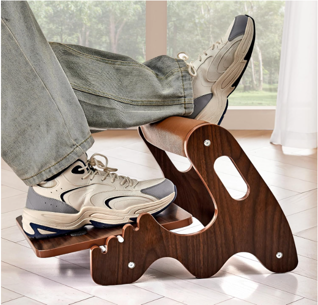 Le repose-pieds à bascule en bois massif offre 3 hauteurs réglables (7/9/11cm) et une oscillation jusqu’à ±60° pour mouvement dynamique des jambes. Barre transversale souple enveloppée de mousse haute densité et cuir résistant.